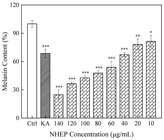 2.7.2. Effects of NHEP on B16 Melanin Production