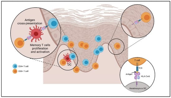 Role of HLA-Cw6 in psoriasis pathogenesis. Created with BioRender.com (accessed on 18 February 2022).