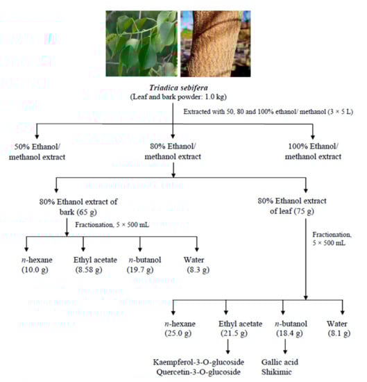 Schematic representation of extraction and fractionation of Triadica sebifera.