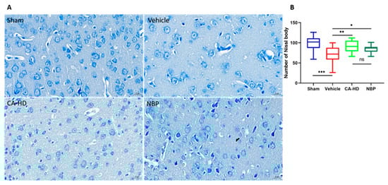 - Han, Q.Y.; Zhang, H.; Zhang, X.; He, D.S.; Wang, S.W.; Cao, X.; Dai, Y.T.; Xu, Y.; Han, L.-J. dl-3-n-butylphthalide preserves white matter integrity and alleviates cognitive impairment in mice with chronic cerebral hypoperfusion. CNS Neurosci. Ther. 2019, 25, 1042–1053. [Google Scholar] [CrossRef] [PubMed]