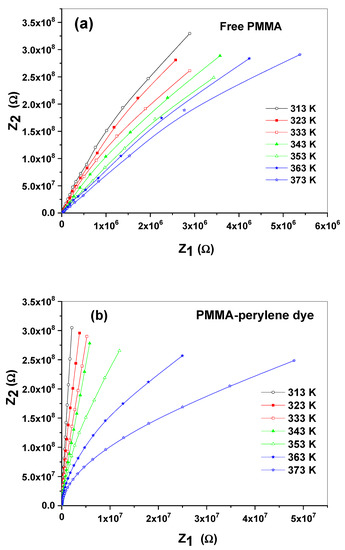 The complex impedance ( of the polymeric sheets can be analyzed by using the following relation [52]: