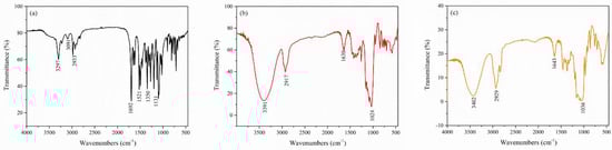 FTIR spectra of (a) Nim; (b) HP-β-CD; (c) Me-β-CD.