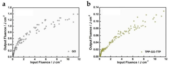 Optical limiting performances of (a) GO and (b) TPP-GO-TTP (Reproduced with permission from ref. [59]. Copyright 2020 Elsevier Publications).