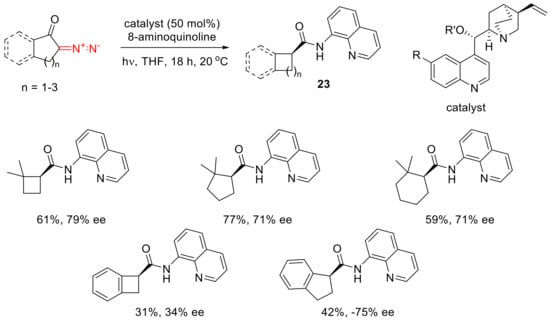 Recently, an enantioselective version of a nucleophile addition to ketenes has been reported. The resulting 8-acylamino isoquinolines 23 were obtained with ee values exceeding 70% (Scheme 15) [43].