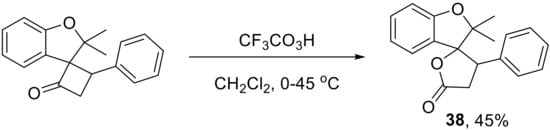 Spirocyclic compounds derived from the Wolff rearrangement can undergo a Baeyer–Villiger oxidation to give 1,7-dioxospiro[3.4]octan-1-ones 38—an important building block for natural product synthesis (Scheme 24) [52,53].