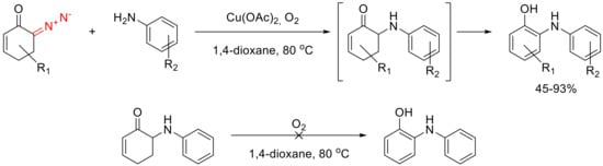 - Ding, D.; Lv, X.; Li, J.; Xu, G.; Ma, B.; Sun, J. Copper-Catalyzed N-H Insertion and Oxidative Aromatization Cascade: Facile Synthesis of 2-Arylaminophenols. Chem. Asian J. 2014, 9, 1539–1542. [Google Scholar] [CrossRef]