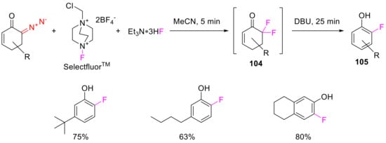 - Yasui, N.; Mayne, C.G.; Katzenellenbogen, J.A. Preparation of o-Fluorophenols from Nonaromatic Precursors: Mechanistic Considerations for Adaptation to Fluorine-18 Radiolabeling. Org. Lett. 2015, 17, 5540–5543. [Google Scholar] [CrossRef]