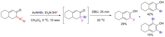 - Kazantsev, A.; Zhukovsky, D.; Bubyrev, A.; Dar’in, D.; Krasavin, M. Fluorination of α-Diazo-γ-Lactams with the Olah Reagent. Tetrahedron Lett. 2021, 69, 152969. [Google Scholar] [CrossRef]