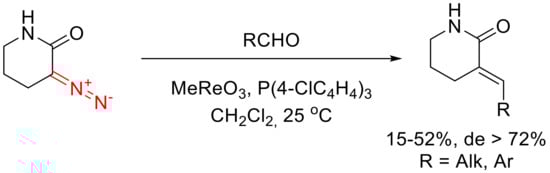 - Harrison, R.; Mete, A.; Wilson, L. Olefination of 3-Diazopiperidin-2-One. Tetrahedron Lett. 2003, 44, 6621–6624. [Google Scholar] [CrossRef]
