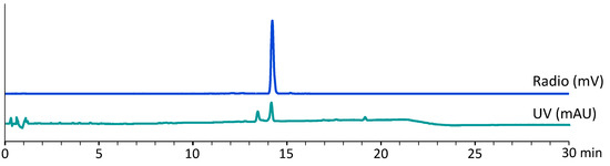 In Figure 3, an exemplary radio-HPLC and UV chromatogram of the final product is shown.