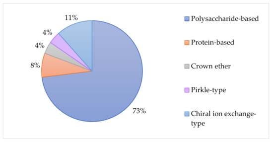 - Teixeira, J.; Tiritan, M.E.; Pinto, M.M.M.; Fernandes, C. Chiral Stationary Phases for Liquid Chromatography: Recent Developments. Molecules 2019, 24, 865. [Google Scholar] [CrossRef] [PubMed] [Green Version]