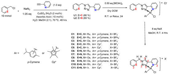 3.3. General Procedure for the Synthesis of Complexes C1-C11