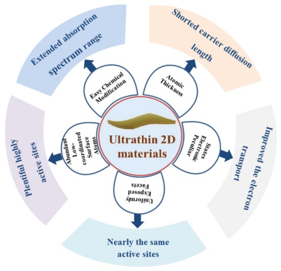 Diagram showing the benefits of ultrathin 2D materials. Reprinted with permission from Royal Society of Chemistry, 19 December 2021 Ref. [57].