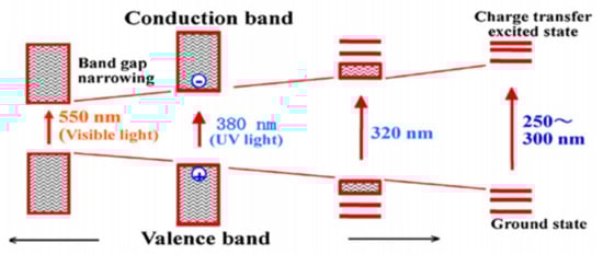 Narrowing and expansion of band gap of semiconductor and wavelength of incoming light. Reprinted with permission from Elsevier, 19 December 2021 Ref. [66].