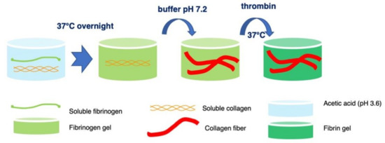 Overview of the synthetic pathway to fibrin-collagen hydrogels.