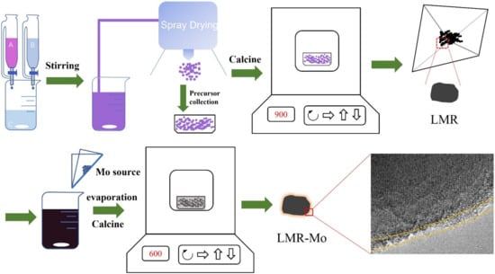 Illustration of the synthesis process of LMR and LMR-Mo samples.