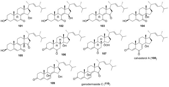 - Kawahara, N.; Sekita, S.; Satake, M. Steroids from Calvatia cyathiformis. Phytochemistry 1994, 37, 213–215. [Google Scholar] [CrossRef]