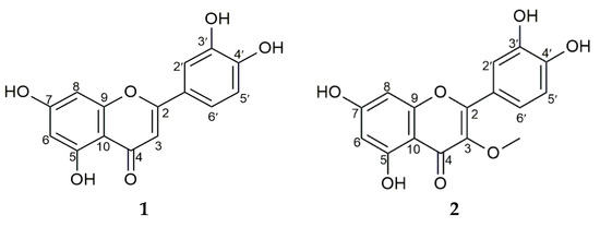 - Schwingel, L.C.; Schwingel, G.O.; Storch, N.; Barreto, F.; Bassani, V.L. 3-O-Methylquercetin from organic Nicotiana tabacum L. trichomes: Influence of the variety, cultivation and extraction parameters. Ind. Crops Prod. 2014, 55, 56–62. [Google Scholar] [CrossRef] [Green Version]