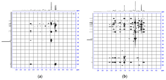 HMBC spectra of guaiol and bulnesol. (a) Guaiol; (b) Bulnesol.