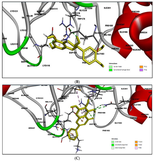 - Zargari, F.; Lotfi, M.; Shahraki, O.; Nikfarjam, Z.; Shahraki, J. Flavonoids as potent allosteric inhibitors of protein tyrosine phosphatase 1B: Molecular dynamics simulation and free energy calculation. J. Biomol. Struct. Dyn. 2017, 36, 4126–4142. [Google Scholar] [CrossRef]