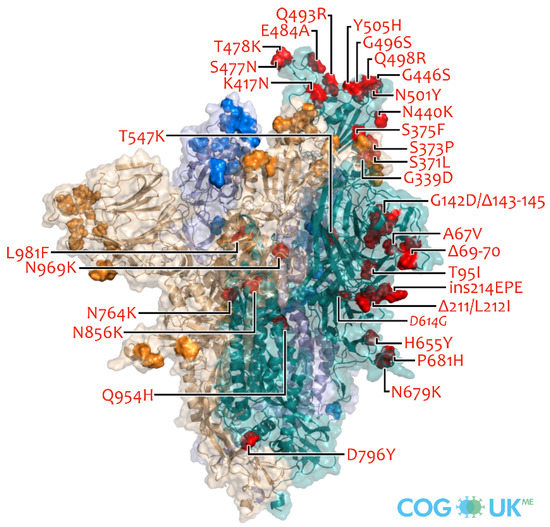 - Lauring, A.S.; Hodcroft, E.B. Genetic Variants of SARS-CoV-2—What Do They Mean? JAMA 2021, 325, 529–531. [Google Scholar] [CrossRef]