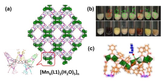 - Shao, Z.; Huang, C.; Dang, J.; Wu, Q.; Liu, Y.; Ding, J.; Hou, H. Modulation of magnetic behavior and Hg2+ removal by solvent-assisted linker exchange based on a water-stable 3D MOF. Chem. Mater. 2018, 30, 7979–7987. [Google Scholar] [CrossRef]