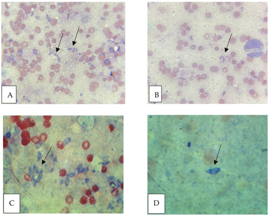 Tachyzoites were counted in Giemsa-stained impression smears of liver, spleen, and brain. The mean count was calculated in thirty oil immersion fields from each organ per each mouse (10 fields/slide and three slides/organ). The mean number was calculated for each subgroup [32].