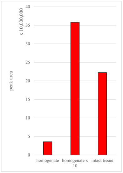 Peak area for carnitine in an exemplary sample of the homogenate and in intact tissue.