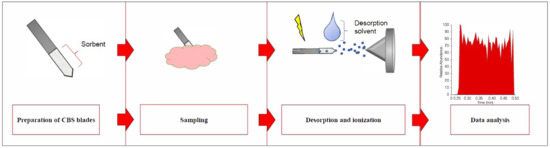 Workflow of the coated blade spray-mass spectrometry (CBS-MS).
