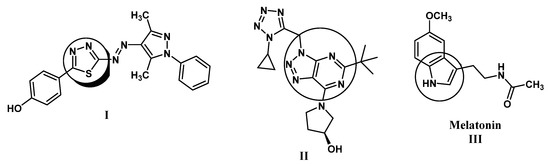 Several publications have appeared in the recent years documenting that variant of heterocycles play an important role in protecting complications accompanied with renal ischemia/reperfusion. Thiadiazolo-pyrazole I exerts a protective action against ischemia via the inhibition of NF-κB that enhances the process of cell apoptosis [58] (Figure 1). In addition, other heterocycles such as triazolopyrimidine derivative II (Figure 1) were tested in a kidney ischemia-reperfusion model, in which it showed efficacy at a dose of 10 mg/kg. Moreover, compound II is protective in a model of renal fibrosis [59]. Furthermore, it was reported that melatonin III treatment on renal I/R injury had putative protective effects, whereas melatonin administration reversed the oxidant responses and improved renal function and microscopic damage. It seems likely that melatonin protects kidney tissue against oxidative damage [60] (Figure 1).