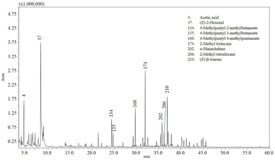 GC-MS analysis of the volatile profile for sample 14 (C. annuum—Calabrian pepper).