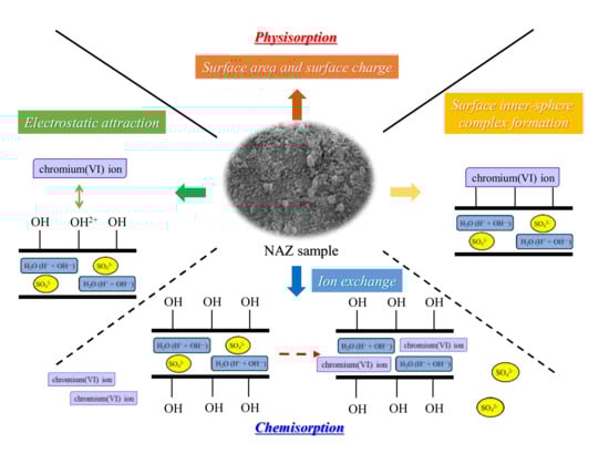 - Tran, H.N.; Nguyen, D.T.; Le, G.T.; Tomul, F.; Lima, E.C.; Woo, S.H.; Sarmah, A.K.; Nguyen, H.Q.; Nguyen, P.T.; Nguyen, D.D.; et al. Adsorption mechanism of hexavalent chromium onto layered double hydroxxides-based adsorbents: A systematic in-depth review. J. Hazard. Mater. 2019, 373, 258–270. [Google Scholar] [CrossRef] [PubMed]