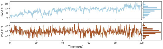 Graphs of solvent accessible surface area (SASA) revealed the protein’s stability and folding.