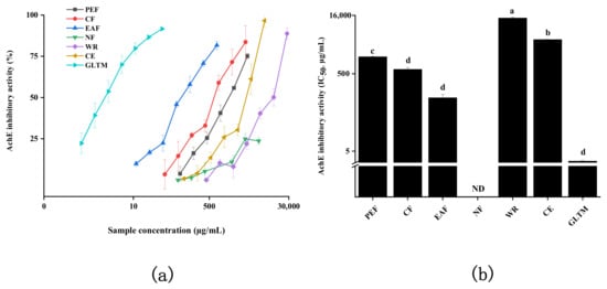 3.6.2. Inhibition Activity of Acetylcholinesterase
