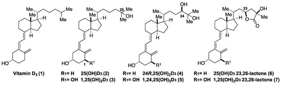 Structures of vitamin D3 (1) and its metabolites (2)–(7).
