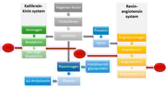 2. Tepasse, P.-R.; Vollenberg, R.; Steinebrey, N.; König, S. High angiotensin-converting enzyme and low carboxypeptidase N activity correlate with disease severity in COVID-19 patients. J. Pers. Med. 2022, 12, 406. [Google Scholar] [CrossRef] [PubMed]