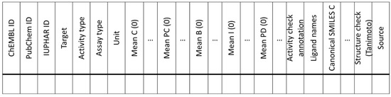 Previous work to assemble a target-focused dataset for nuclear receptor ligands (NURA) [20] inspired the structure of this dataset. The consensus dataset comprises the following information and the format exemplified in Figure 3.