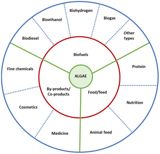 - Sarkar, S.; Manna, M.S.; Bhowmick, T.K.; Gayen, K. Priority-based multiple products from microalgae: Review on techniques and strategies. Crit. Rev. Biotechnol. 2020, 40, 590–607. [Google Scholar] [CrossRef] [PubMed]