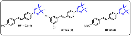 One of the most challenging target areas in the field of medicinal chemistry is heart disease. A high level of lipids in the blood (hyperlipidemia) considerably raises the risk of heart disease. This issue has been addressed at the level of transcriptional control for the regulation of lipogenic and cholesterogenic enzymes to maintain effective lipid metabolism. However, progress in treating hyperlipidemia has remained difficult to achieve over the years for two major reasons: (1) the molecular mechanism of lipid metabolism is still unknown and (2) some patients with hyperlipidemia do not respond to statin-related side effects. Therefore, it is necessary to develop novel approaches for the treatment of hyperlipidemia. In this regard, we explored boron-containing stilbene-based compounds and tested them for their potential as lipogenic inhibitors in mammalian hepatocytes. It was found that compound 1 showed a significant decrease in rate-limiting enzymes in the synthesis pathways for both fatty acids and cholesterol at the mRNA level [22]. Interestingly, it was also observed that the particular drug (BF102) has no significant toxicity in mice at the highest possible dose administered in our preliminary in vivo experiments (Scheme 1).