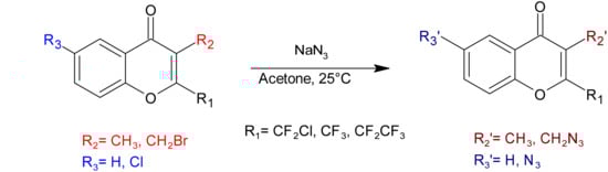 - Sosnovskikh, V.Y. Synthesis and Reactions of Halogen-Containing Chromones. Russ. Chem. Rev. 2003, 72, 489–516. [Google Scholar] [CrossRef]