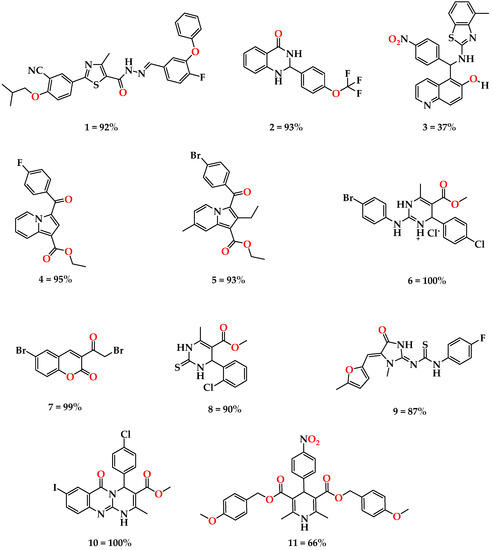 - Venugopala, K.N.; Nayak, S.K.; Gleiser, R.M.; Sanchez-Borzone, M.E.; Garcia, D.A.; Odhav, B. Synthesis, polymorphism, and insecticidal activity of methyl 4-(4-chlorophenyl)-8-iodo-2-methyl-6-oxo-1, 6-dihydro-4H-pyrimido [2, 1-b] quinazoline-3-carboxylate against Anopheles arabiensis mosquito. Chem. Biol. Drug Des. 2016, 88, 88–96. [Google Scholar] [CrossRef]