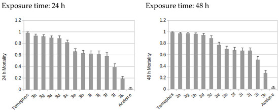 | Temephos | 0.24 ± 0.04 ak | 0.78 ± 0.04 m | 0.98 ± 0.01 q | 0.27 ± 0.04 abck | 0.82 ± 0.03 os | 0.99 ± 0.01 g |