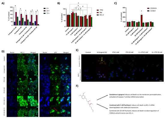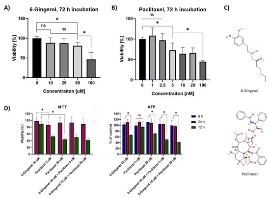 Chicago/Turabian StyleWala, Kamila, Wojciech Szlasa, Natalia Sauer, Paulina Kasperkiewicz-Wasilewska, Anna Szewczyk, Jolanta Saczko, Nina Rembiałkowska, Julita Kulbacka, and Dagmara Baczyńska. 2022. "Anticancer Efficacy of 6-Gingerol with Paclitaxel against Wild Type of Human Breast Adenocarcinoma" Molecules 27, no. 9: 2693. https://doi.org/10.3390/molecules27092693