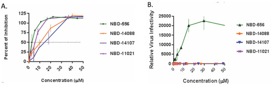p-F-Ph. The results indicated that the position of substitution and chirality has a high impact on their inhibitory effect. The scaffold was also proved to inhibit viral entry into the viral cycle rather than interfere in any viral RNA replication in host cells with a mechanism of action (MoA) study.