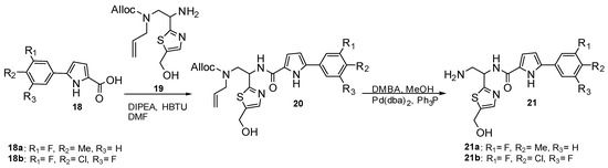 17, the peptidomimetic chain was added to the commercially available indole derivative