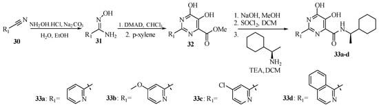 With the progress in developing inhibitors at the RNase H of HIV RT, quinoline scaffolds also joined the race to combat HIV-1. While HIV RT synthesizes DNA from viral RNA, RNase H plays a crucial role in degrading RNA to form double-stranded DNA. Overacker et al. [