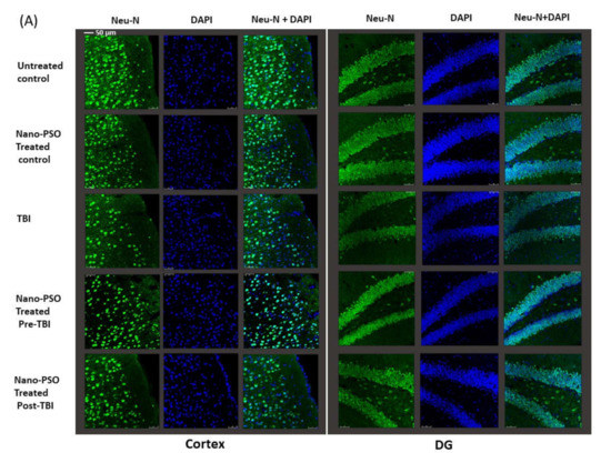 2.2. Nano-PSO Treatment Prevents Neuronal Death in TBI Mice