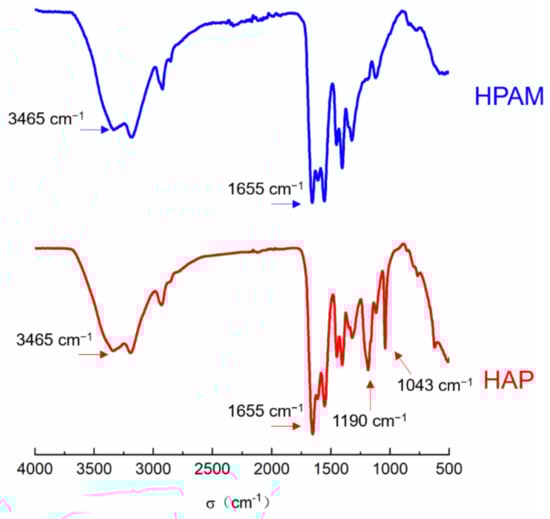 The comparison between FTIR spectra of HAP and HPAM.