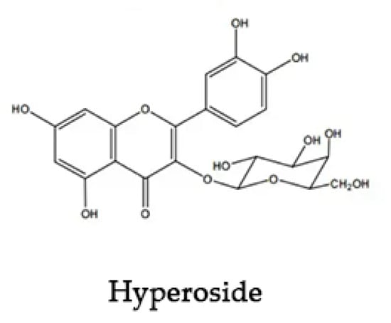 Hyperoside (Hyp) is a natural flavonol glycoside complex, the chemical structure of which is shown in Figure 1. It is found in whole grasses of Hypericaceae, Rosaceae, Platycodonaceae, Labiaceae, and other plants [1]. Modern pharmacological studies have shown that Hyp has anti-inflammatory, antioxidant [2], anti-thrombotic, anti-fibrosis, analgesic, and other pharmacological effects [3,4]. It has therapeutic effects on cardiovascular and cerebral ischemia, liver fibrosis, heart failure, and other diseases [5,6]. The poor water solubility [7], low permeability, and instability of Hyp greatly affects its clinical application [8]. It is a useful tool to ameliorate the solubility of insoluble drugs, as well as to enhance their bioavailability through encapsulation technologies, such as in eutectic mixtures [9], microcapsule technology [10,11], and nanotechnology [12,13,14]. Among these approaches, cyclodextrin encapsulation has the advantages of low price, simple operation, mature technology, and good prospects [15,16,17].