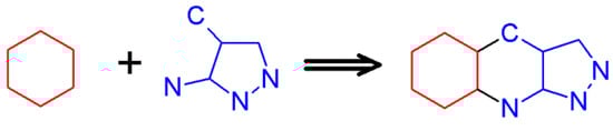 The second path is essentially the reverse of the first methodology, where the o-aminocarbonyl system is linked to the pyrazole moiety. In a two-component reaction (C22), a bond is formed between the C8a carbon and the N9 nitrogen, and between the carbons C4a and C4 (Figure 3; Path 2).
